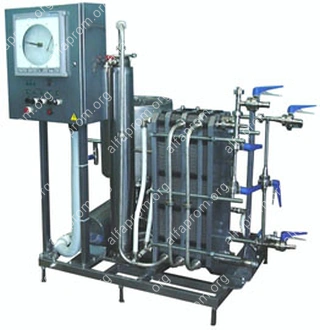 Проточный пластинчатый пастеризатор-охладитель молока и жидких продуктов предназначен для быстрого нагрева, кратковременной выдержки и последующего охлаждения молока, сливок, соков, питьевой воды и аналогичных по вязкости жидких продуктов.В состав комплекта входят: котел водонагревательный с манометром для измерения давления теплоносителя, манометр для измерения давления продукта на выходе, блок теплообменных пластин для регенерации и охлаждения молока, уравнительный бак с клапанно-поплавковым механизмом, электромеханический обратный клапан для переключения потоков продукта в процессе пастеризации, центробежный молочный насос, выдерживатель пастеризуемого молока, единый …