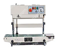 Конвейерный запайщик FRD-750II – запайщик непрерывного действия вертикального типа. Новинка завода 2021 года. Отличительной особенностью является возможность сборки аппарата и в вертикальном и в горизонтальном исполнении, запайщик универсален. Как и во всех роликовых запайщиках Hualian есть возможность регулировки скорости конвейера и температуры нагрева.