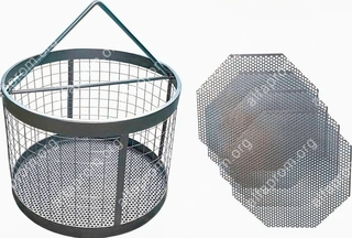 Корзина предназначена для загрузки банок с продуктом в автоклав для последующей стерилизации при производстве консервов. Выполнена из пищевой нержавеющей стали. Комплектуется четырьмя перфорированными полками из нержавеющей стали для банок.