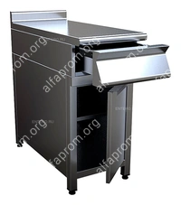 Закрытый нейтральный модуль Кобор N9-6EB предназначен для использования в составе тепловой линии в качестве дополнительного места для раскатки теста, обработки ингредиентов для приготовления блюд, установки оборудования и приборов. Модуль оснащен выдвижным ящиком, сплошной полкой, распашной дверцей и регулируемыми по высоте ножками. Корпус выполнен из нержавеющей стали AISI 430, каркас - из профильной трубы 40х40 мм.