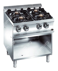 Газовая плита Apach Chef Line GLRRG77OS 700-й серии предназначена для приготовления различных блюд из мяса, птицы, рыбы и овощей в наплитной посуде на предприятиях общественного питания и торговли. Модель оснащена электромеханической панелью управления и открытой подставкой c регулируемыми по высоте ножками. Корпус выполнен из нержавеющей стали AISI 304, рабочая поверхность - из стали толщиной 1,5 мм, ножки - из нержавеющей стали.