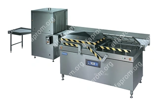 Вакуумная линия Henkovac А-5000LL предназначена для автоматической вакуумной упаковки продуктов, полуфабрикатов и промтоваров с термоусадкой запаянных пакетов на предприятиях пищевой промышленности и торговли. Упаковщик рассчитан на крупные производства с большими объемами упаковываемой продукции и для групповой упаковки мясных продуктов весов до 30 кг с последующей усадкой пакета для транспортировки.